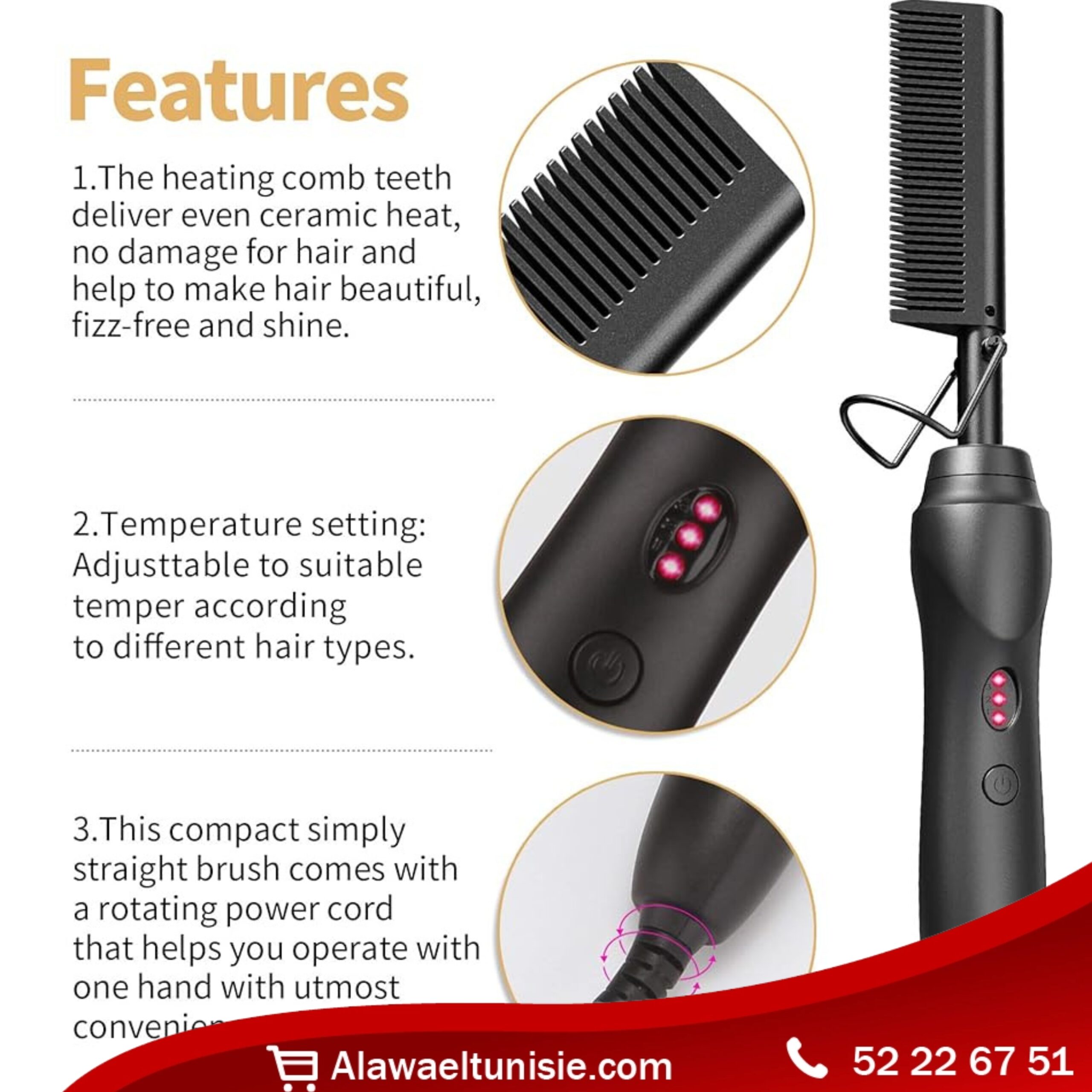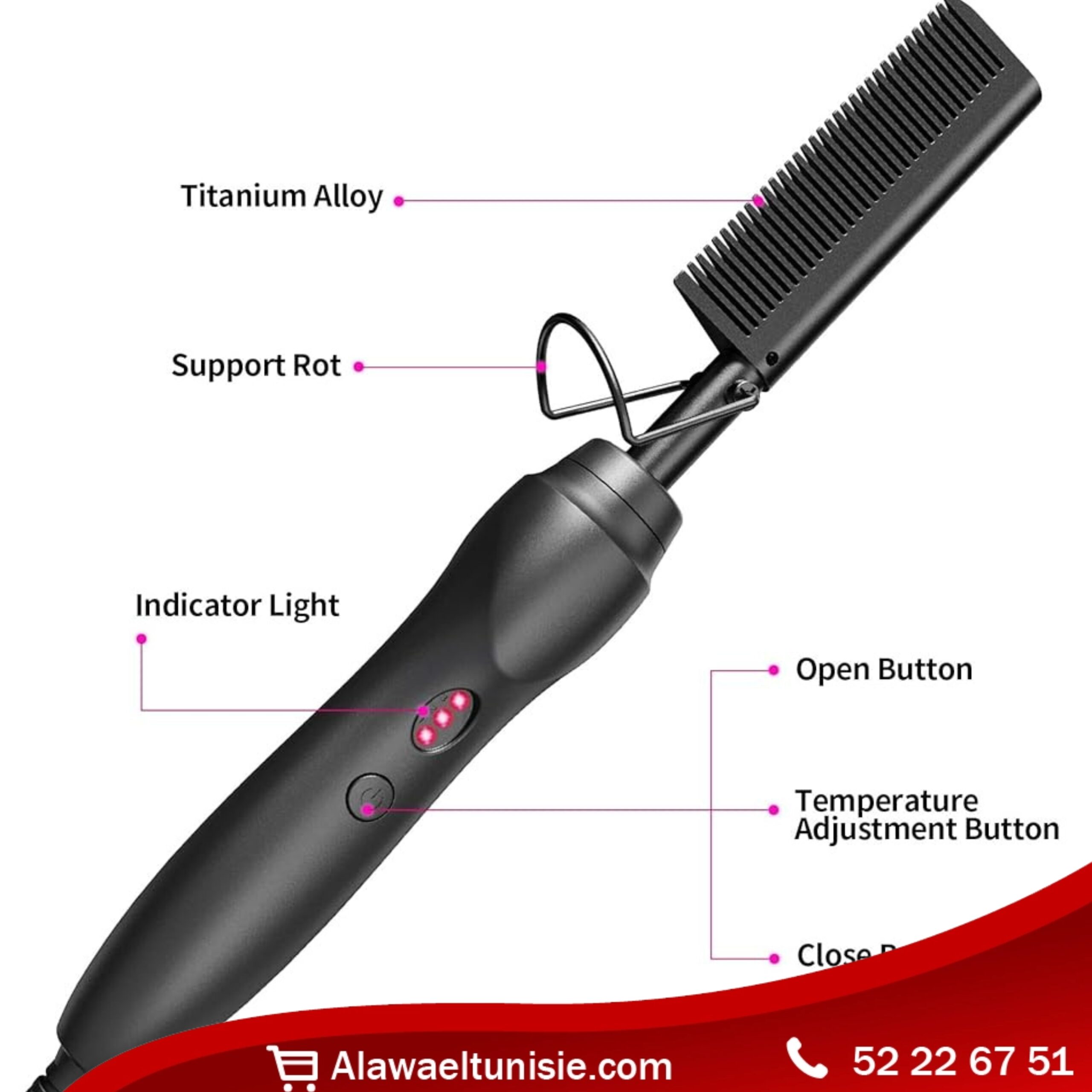 وداعاً للشعر المنفوش (Frisottis) وضياع الوقت كل صباح! مع المشط الحراري لتمليس الشعر من شركة الأوائل، تنجمي ترطّبي شعرك وتعملي تسريحة مزيانة في الدار بكل سهولة وأمان، من غير ما تضرّي شعرك بالحرارة الزايدة.